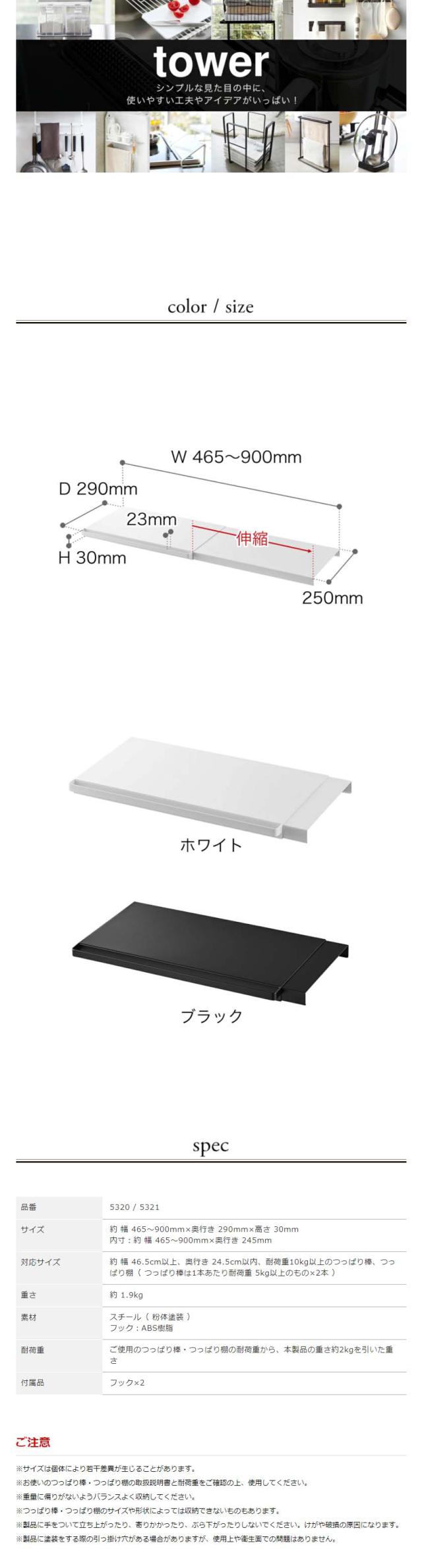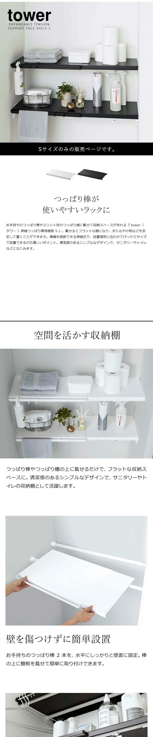 [ 伸縮つっぱり棒用棚板 S タワー ]山崎実業 tower 突っ張り棒 棚 棚板 収納 おしゃれ 突っ張り棚 スリム ワイド トイレ ラック ランドリーラック つっぱり 伸縮 シンプル 洗濯機上 サニタリー収納 yamazaki ブラック ホワイト 5320 5321 【送料無料】