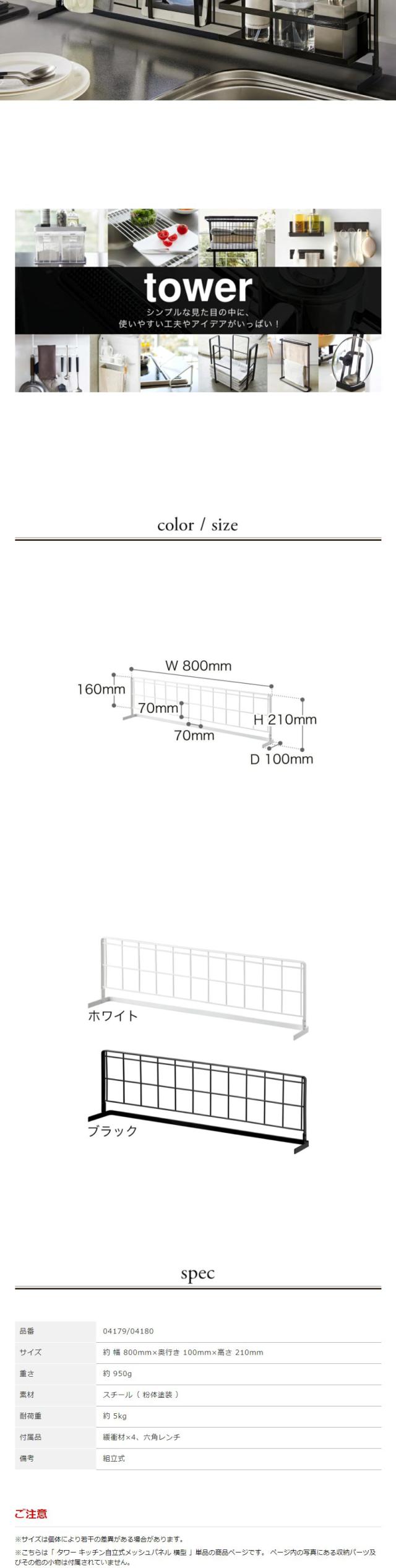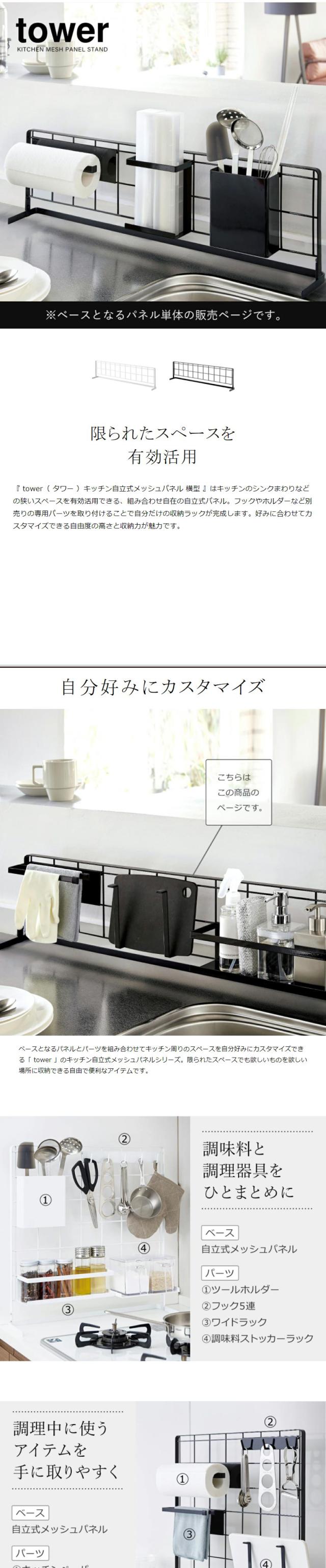 [ キッチン自立式メッシュパネル タワー 横型 ]山崎実業 tower 自立式メッシュパネル ワイヤーネット キッチン 収納 フック 引っ掛け シンク コンロ 隙間 ワイヤーパネル キッチン収納 おしゃれ yamazaki ブラック ホワイト 4179 4180【送料無料】