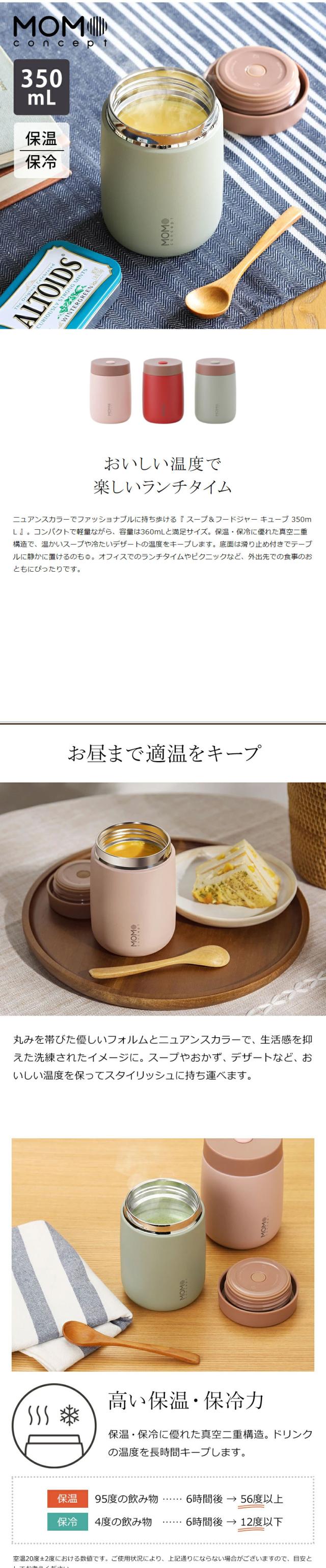 [ スープ&フードジャーキューブ 350ml ]キューブ スープ&フードジャー 350ml スープジャー おしゃれ 大人 保温 保冷 オフィス フードジャー 広口 軽量 軽い お弁当 ステンレスボトル 真空断熱 マイボトル ランチ かわいい CUBE MOMOCONCEPT モモコンセプト 百麦