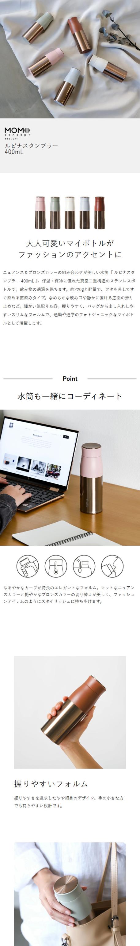 [ ルピナスタンブラー RG 400ml ]ルピナス タンブラー 水筒 おしゃれ 大人 マグボトル 保温 保冷 スリム 軽量 直飲み ステンレスボトル 真空断熱 持ち運び かわいい ふた付き 洗いやすい ステンレスマグボトル ゴールド MOMOCONCEPT モモコンセプト 百麦