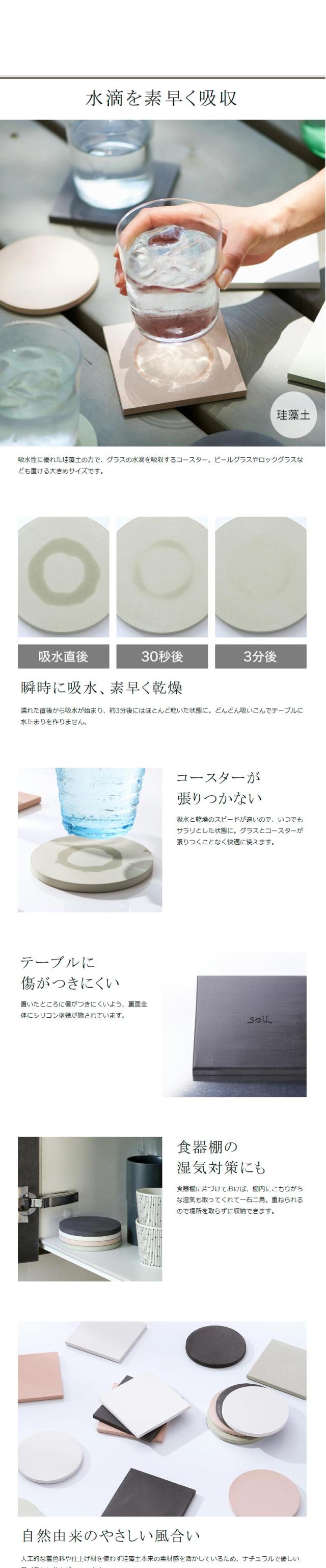 [ ソイル コースター ラージサイズ 2枚セット スクエア or サークル ]珪藻土 コースター soil ソイル 2枚入り おしゃれ 吸水コースター 珪藻土コースター 北欧 シンプル 水滴 四角 丸 角型 丸型 プレゼント soilコースター 新築祝い ギフト