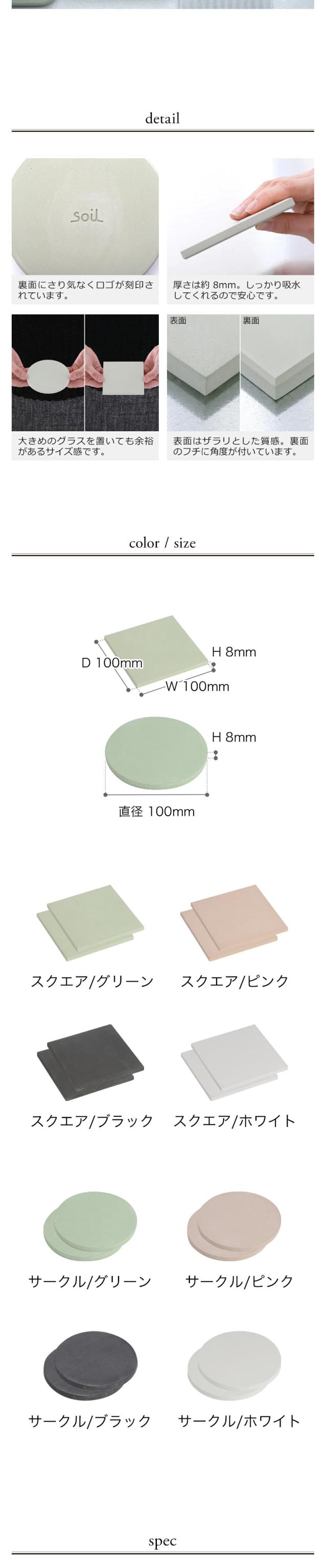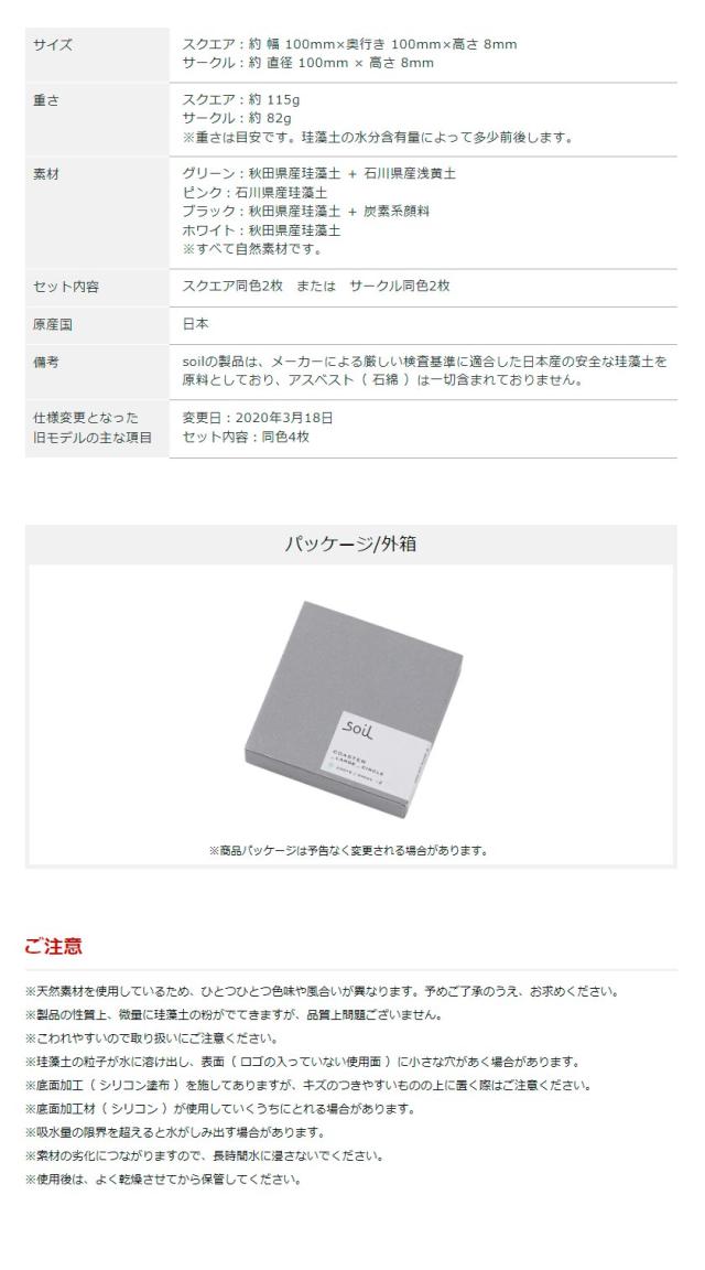 [ ソイル コースター ラージサイズ 2枚セット スクエア or サークル ]