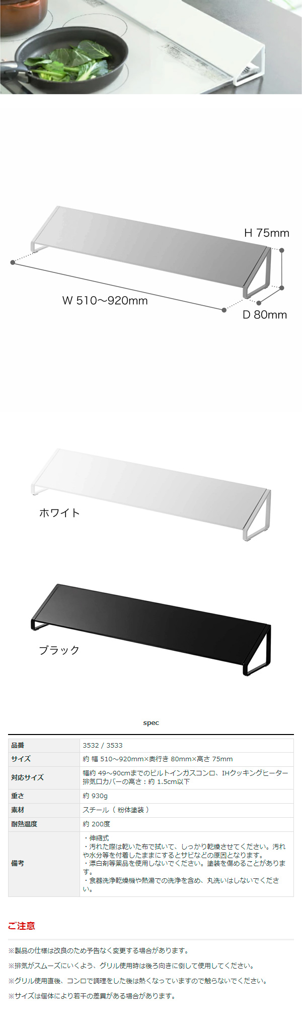 [ 排気口カバー ワイド タワー ]山崎実業 tower コンロ 油はね ガード IH 魚焼きグリル IH対応 ガスコンロ キッチン 油汚れ タワーシリーズ コンロ奥 カバー コンロカバー グリルカバー yamazaki 伸縮 75cm 60cm シンプル おしゃれ ホワイト ブラック 3532 3533 公式