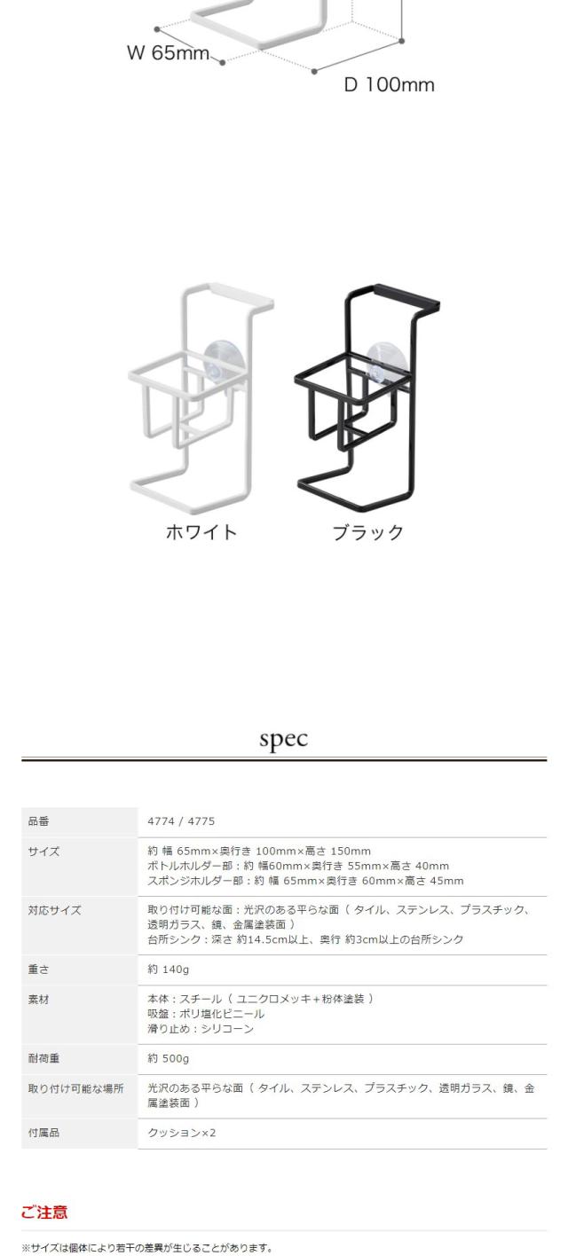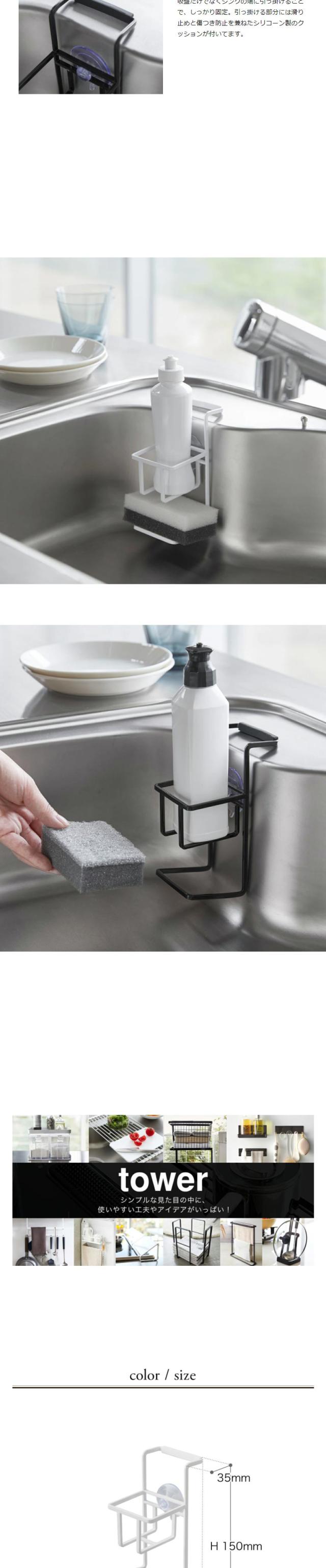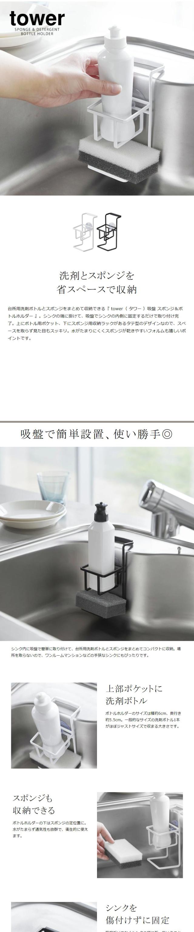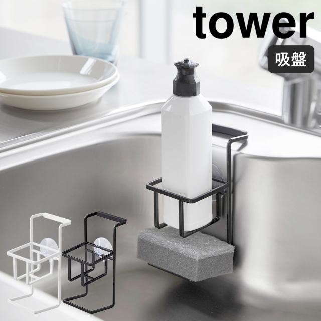 [ 吸盤 スポンジ&ボトルホルダー タワー ]山崎実業 tower スポンジ入れ スポンジラック キッチン小物 洗剤ボトル入れ シンク収納 キッチン収納 洗剤 スポンジ収納 吸盤 yamazaki シンプル ホワイト ブラック モノトーン 4774 4775