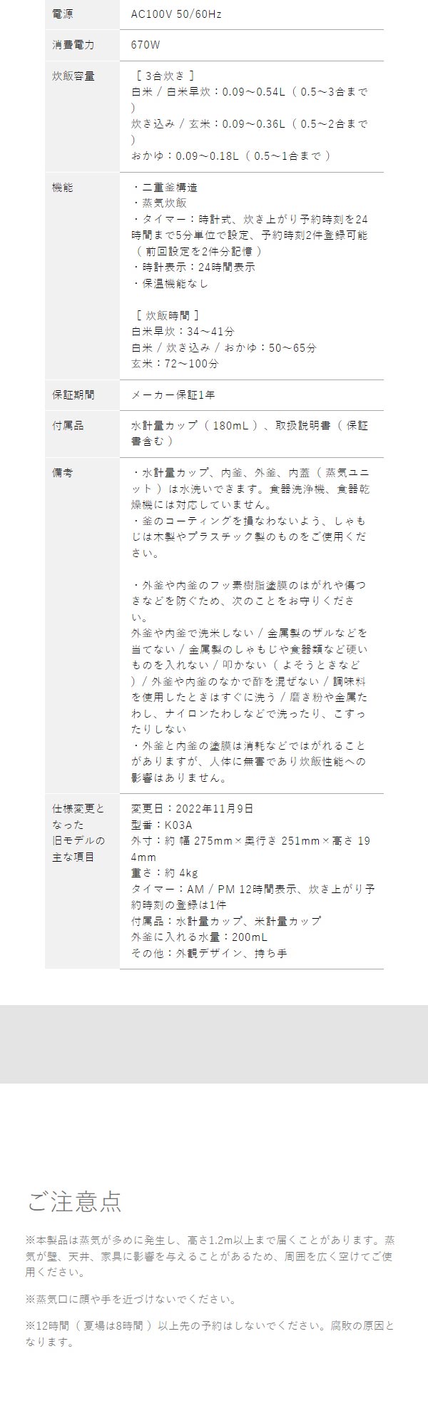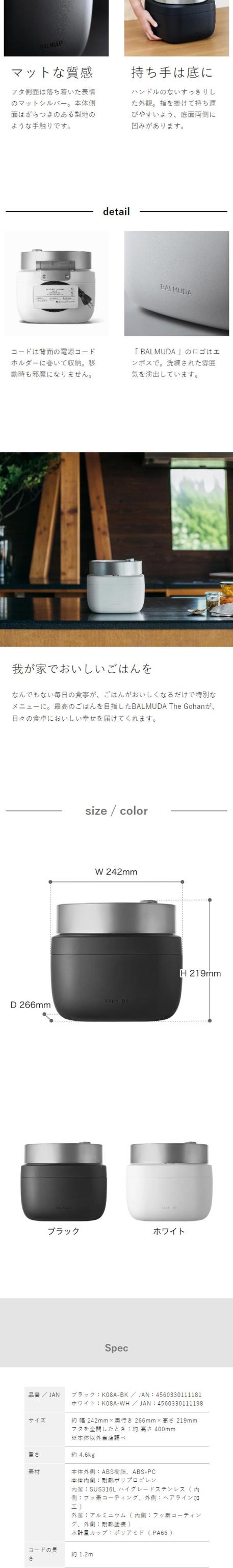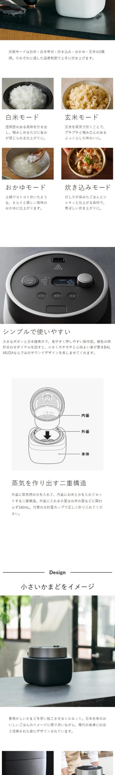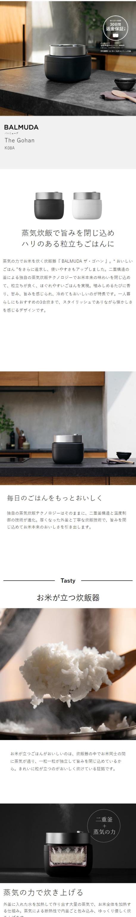 [ BALMUDA The Gohan ]正規品 バルミューダ ザ・ゴハン 炊飯器 3合 一人暮らし おしゃれ 炊飯ジャー 3合炊き ゴハン ごはん ご飯 玄米 無洗米 おかゆ 電気炊飯器 三合 炊飯機 蒸気 炊飯 シンプル K08A-BK K08A-WH ブラック ホワイト【送料無料】