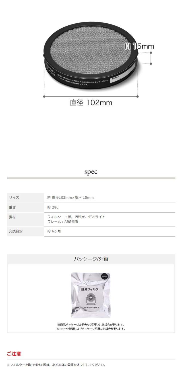 バルミューダ(BALMUDA) グリーンファン C2用の脱臭フィルター。活性炭の力でタバコ臭、調理臭、ペット臭等の気になるニオイの原因物質を取り除きます。交換目安は約半年です。