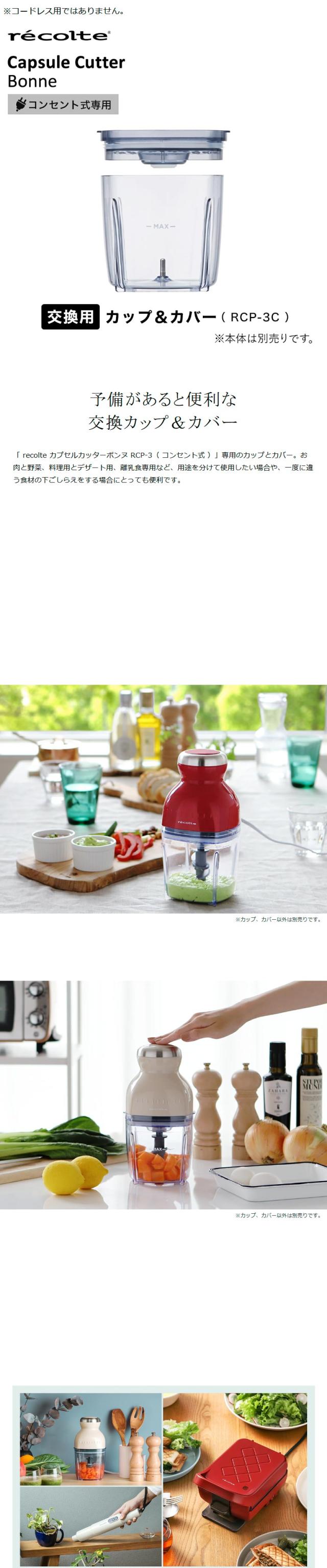 [ recolte Capsule Cutter Bonne 専用カップ&カバー ]レコルト カプセルカッター ボンヌ 交換用 カップ RCP-3C recolte フードプロセッサー 離乳食 専用カップ 専用ボトル 離乳食作り フタ 器 コンパクト 交換用 使い分け 予備