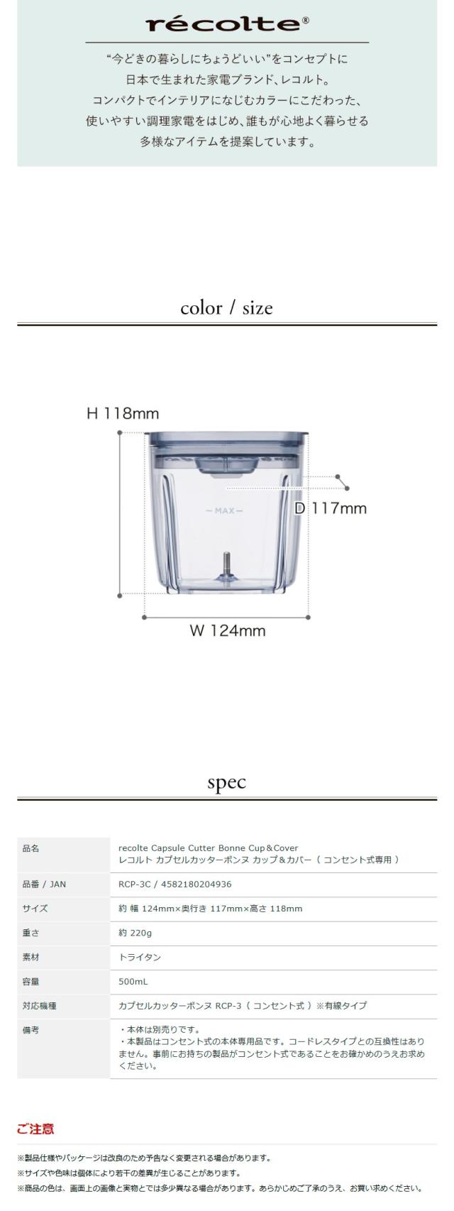 [ recolte Capsule Cutter Bonne 専用カップ&カバー ]