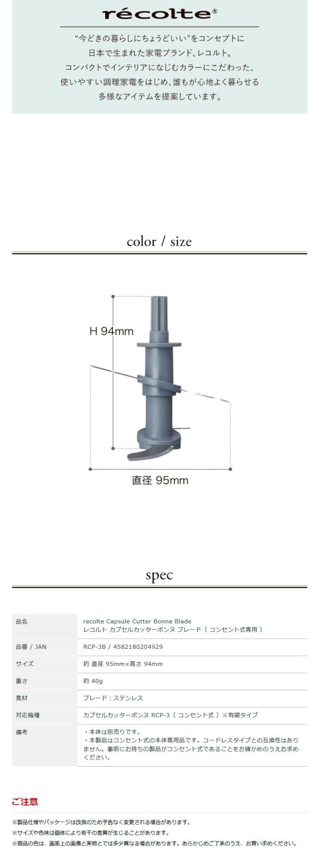 [ recolte Capsule Cutter Bonne 専用ブレード ]レコルト カプセルカッター ボンヌ 交換用 ブレード 刃 RCP-3B recolte フードプロセッサー 離乳食 ドライフード ペースト アイスクラッシュ アイスクラッシャー カキ氷機 かき氷器 取り換え 交換ブレード 交換用