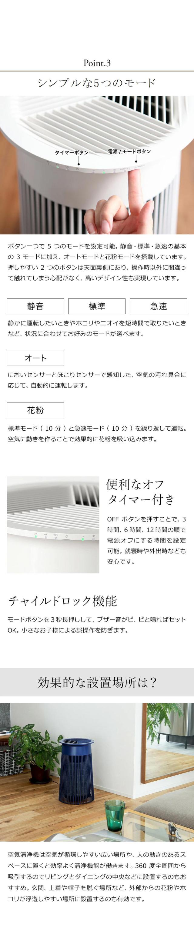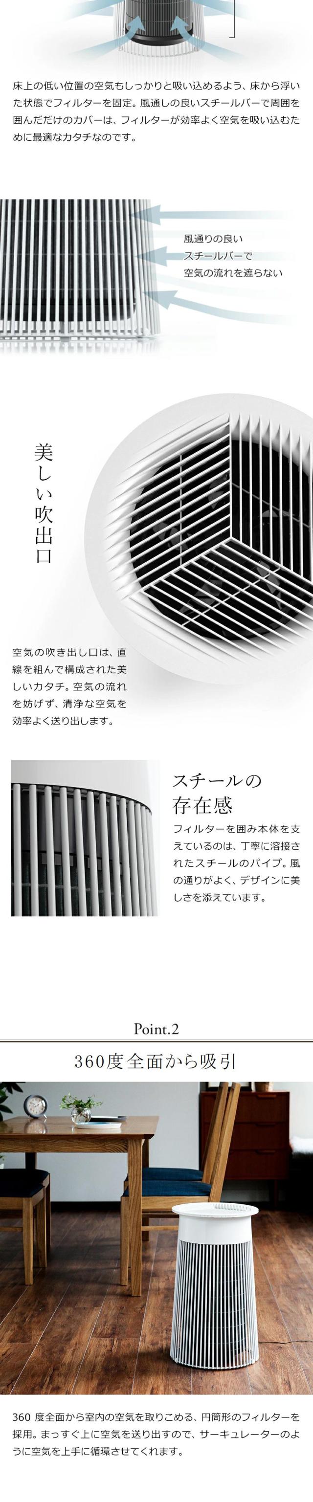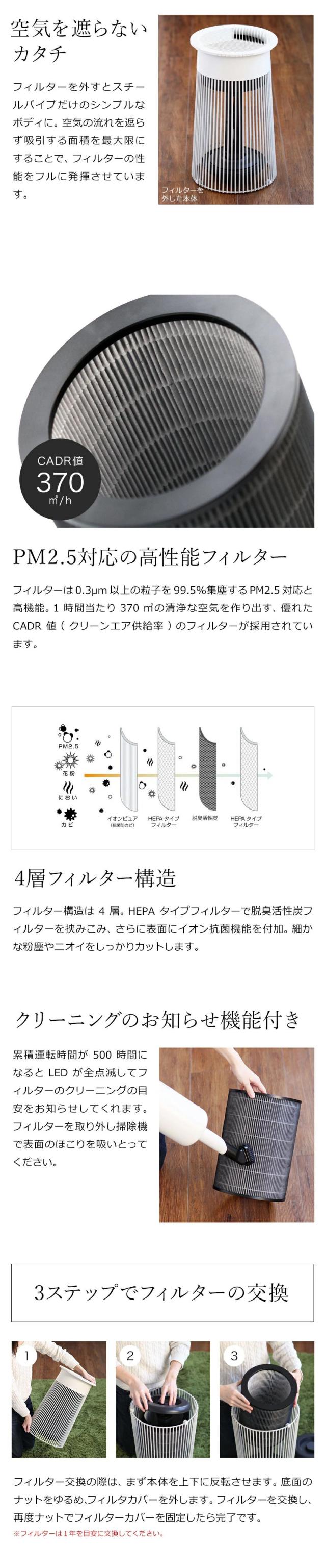 ±0( プラスマイナスゼロ )空気清浄機 C030は空気の汚れを最大限に吸入するためにデザインされ、360度全方向から空気を吸引し、素早く清浄。PM2.5対応の高性能フィルターを搭載。