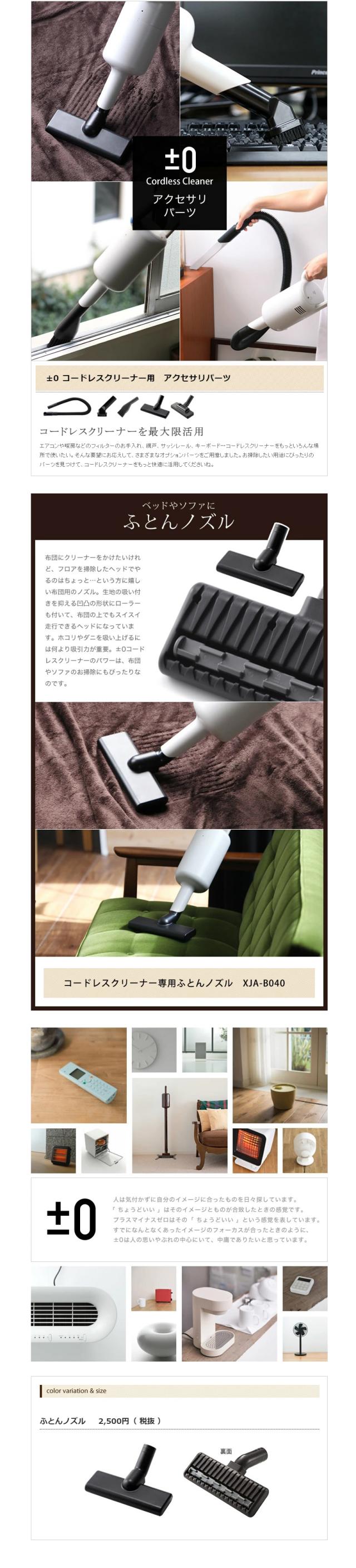[ コードレスクリーナーアクセサリー ふとんノズル ]±0( プラスマイナスゼロ ) コードレス掃除機 XJC-B021 / XJC-A020 / XJC-Y010 / XJC-C030 用ノズル ふとんノズル 布団ノズル XJA-B040 布団クリーナー プラマイ プラマイゼロ コードレス掃除機 布団 掃除