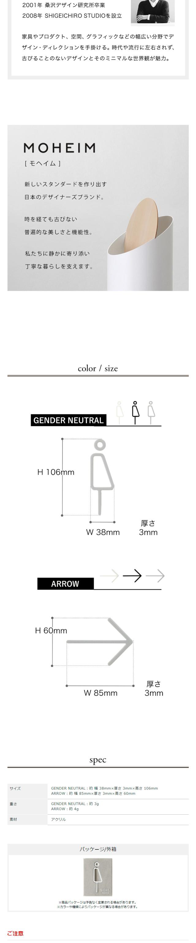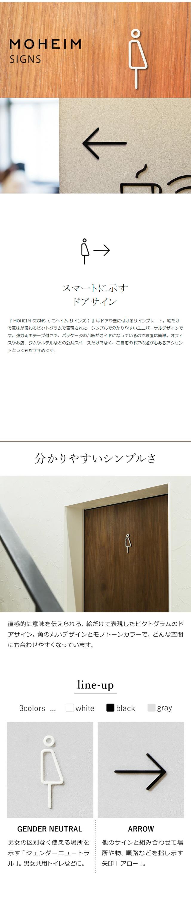 [ MOHEIM SIGNS 2種 ]【メール便送料無料】モヘイム トイレサイン ドアサイン ピクトサイン トイレ 洗面所 トイレマーク おしゃれ 矢印 サイン ピクトグラム ジェンダーニュートラル ジェンダーフリー アロー サインプレート デザイナーズ オフィス カフェ ホテル