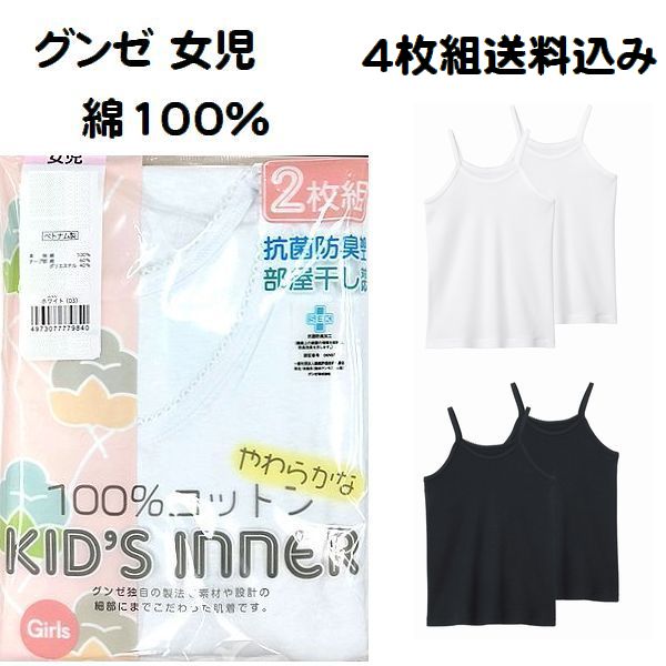 4枚組 グンゼ 子供肌着 キャミソール シャツ インナー キッズ 女の子 100cm〜160cm 綿100% AF4150