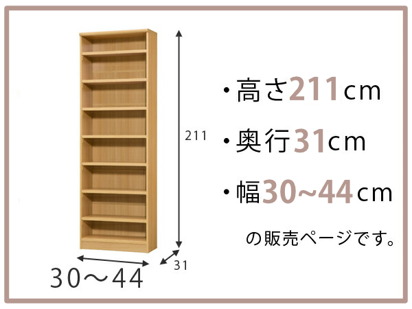 オーダー本棚 標準棚板タイプ 幅30-44cm 奥行31cm 高さ211cm ( 本棚 オーダー オーダーメイド 収納棚 壁面収納 日本製 書棚 ラック フリーラック コミック 文庫本 )