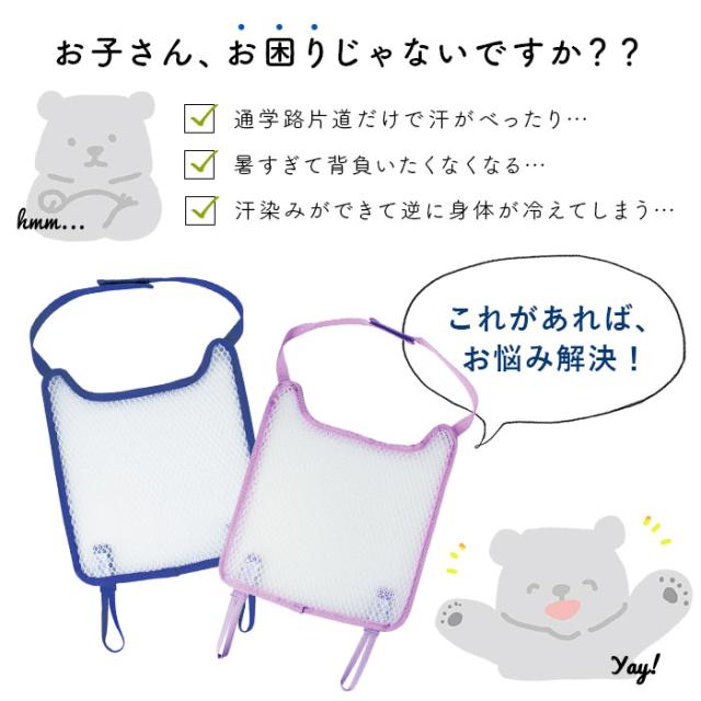 ランドセル 背中 パッド 通販 取付 簡単 背あて 背中 カバー 水洗い 洗える メッシュ ネイビー パープル デビカ 爽快 パット 汗 清涼 ムレ べたつきにくい サラッと ランドセル用爽快背あてパッド