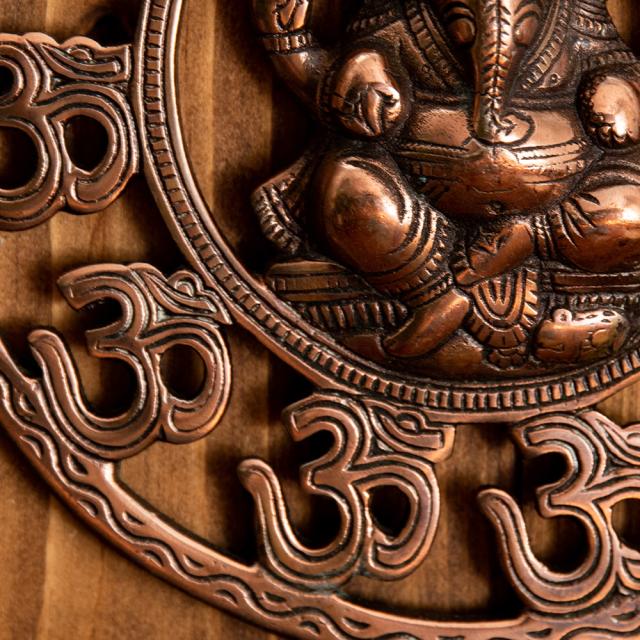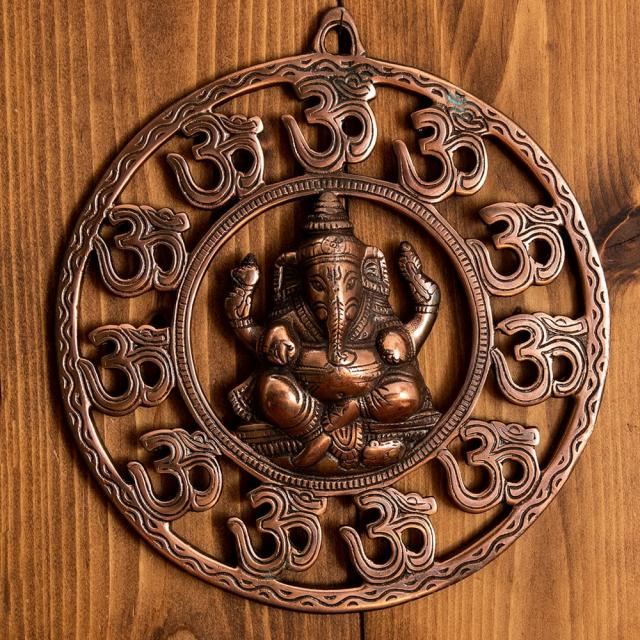 〔壁掛けタイプ〕インドの神様ウォールハンギング オーン・ガネーシャ 23cm / 壁掛け像、ウォールハンギング、まんじ、オーン、ガネーシャ像、ガネーシャ、神様像、金運、幸運、学業 インドとアジア雑貨 【インドとアジアン雑貨