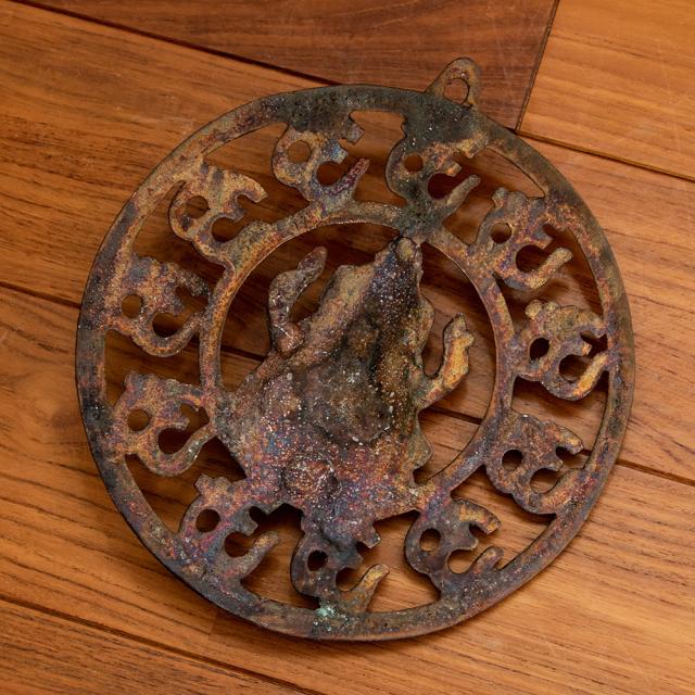 黒光りする重厚な雰囲気と、持ち運びしやすい重さが特徴の金属、ガンメタル製。重量とコスト削減のため、見えない裏部分は綺麗に削られています。その分、お値段も安く、お買い特なんですね。そんな裏面もインドらしい無骨な感じで味わい深いです。表部分はしっかりと綺麗に作りこまれているので、部屋に飾ると存在感抜群!!レストランや雑貨屋のディスプレイとしてもお勧めです。満足いく大きさ、確かな細工で、きっとご満足いただける逸品です。