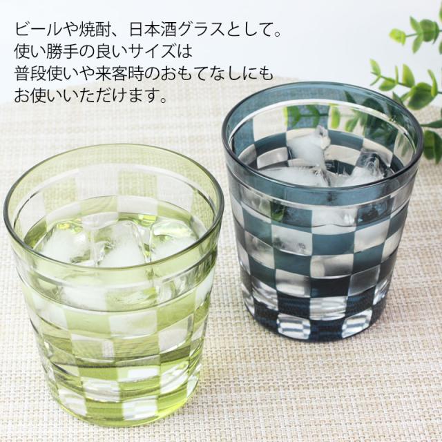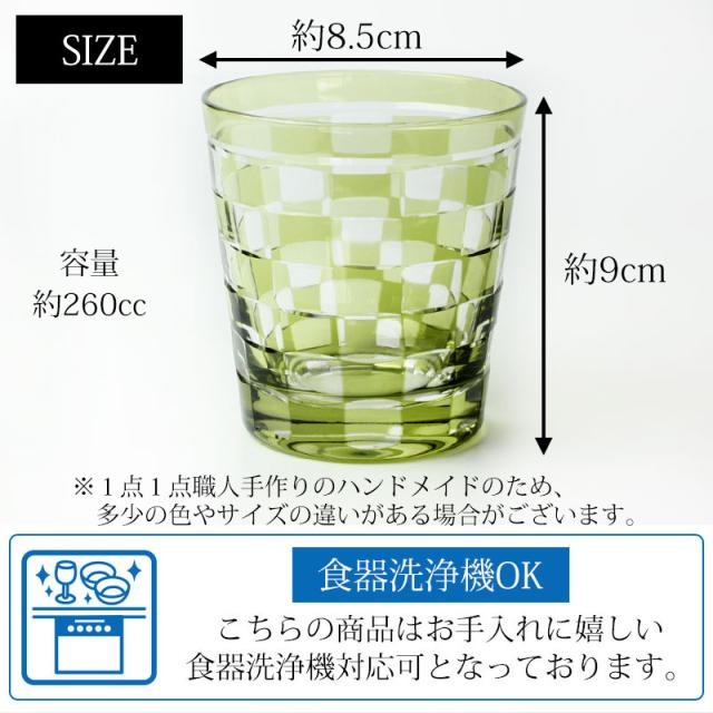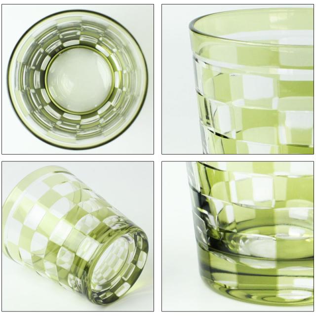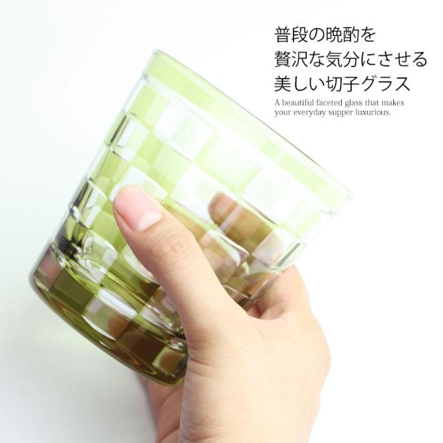 切子グラス 260ml オリーブ 桐箱入り 市松模様 おしゃれ 切子 グラス タンブラー オールド 酒器 ビール 焼酎 日本酒 などに ガラス 食洗機対応 k_name