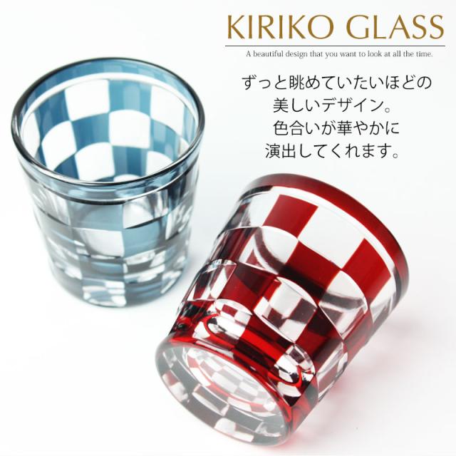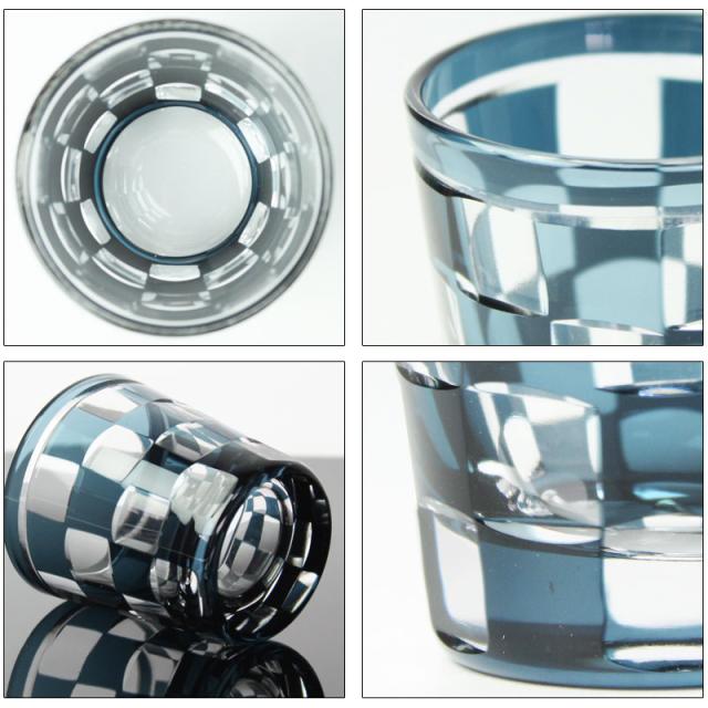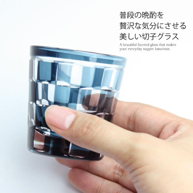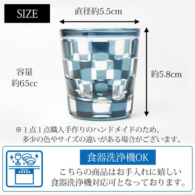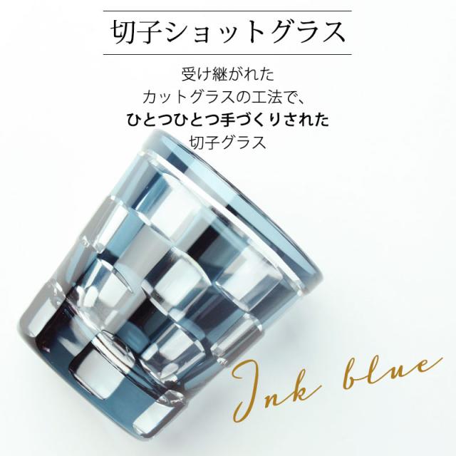 ショットグラス 切子グラス 65ml 市松模様 インクブルー 桐箱入り おしゃれ ぐい呑み お猪口 おちょこ 日本酒 ウイスキー リキュール テキーラ などに ガラス 青 食洗機対応 プレゼント ギフト 贈り物 コップ お祝い ギフトBOX k_name