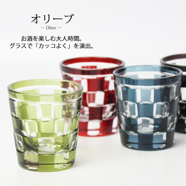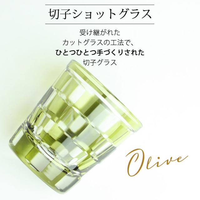 オリーブショットグラス 切子グラス 65ml 市松模様 オリーブ おしゃれ ぐい呑み お猪口 おちょこ 日本酒 ウイスキー リキュール テキーラ などに ガラス 食洗機対応