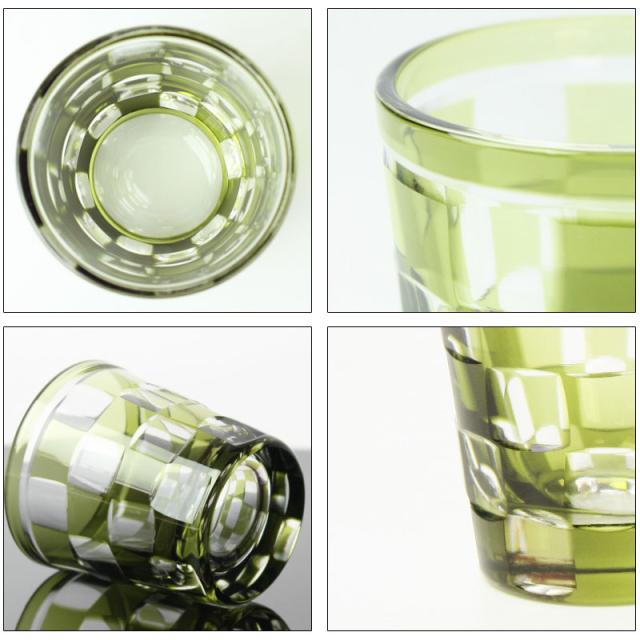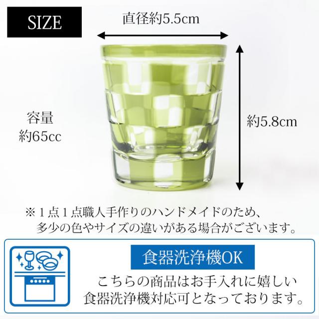 ショットグラス 切子グラス 65ml 市松模様 オリーブ おしゃれ ぐい呑み お猪口 おちょこ 日本酒 ウイスキー リキュール テキーラ などに ガラス 食洗機対応 k_name