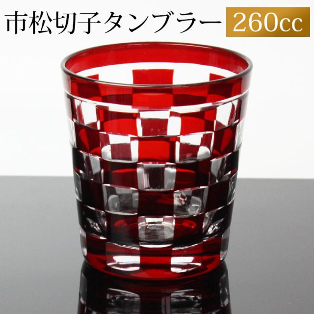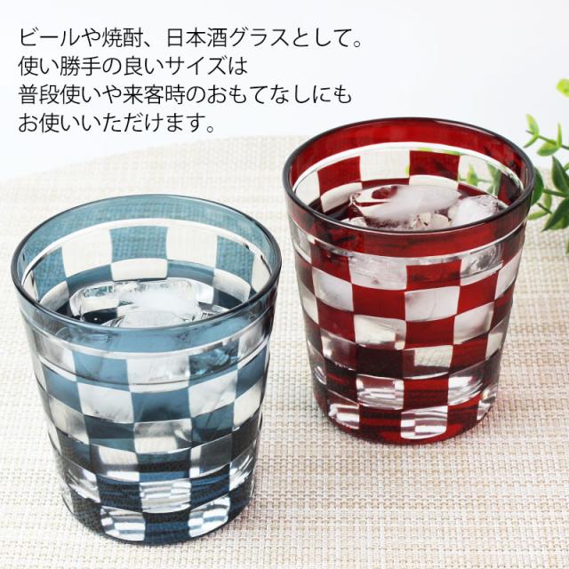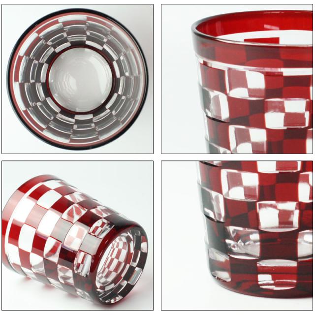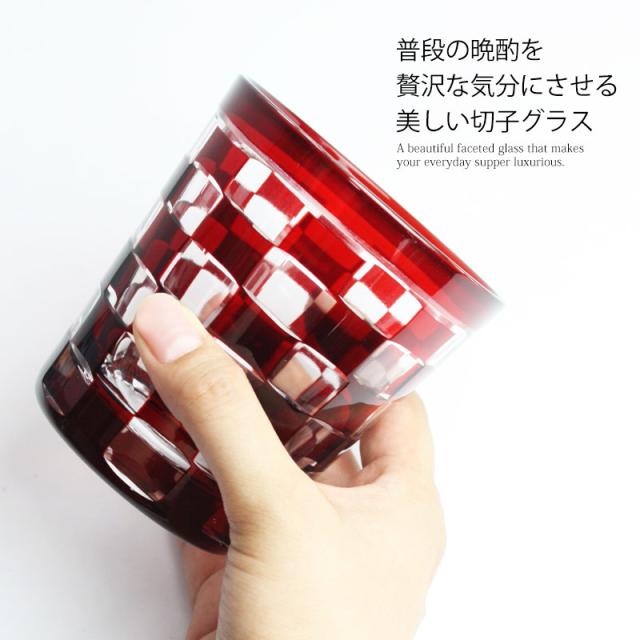 切子グラス 260ml レッド 市松模様 おしゃれ 切子 グラス タンブラー オールド 赤 酒器 ビール 焼酎 日本酒 などに ガラス 食洗機対応 k_name