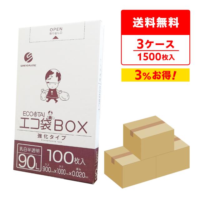 ポリ袋 箱タイプ 90リットル 90x100cm 0.020mm厚 乳白半透明 100枚x5小箱x3箱 BX-940-3 / ゴミ袋 ごみ袋 送料無料