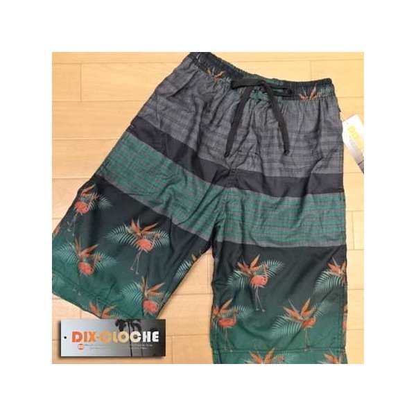 水着 メンズ サーフパンツ 送料無料 Mサイズ フラミンゴ 黒 緑 男性用 M寸 (s12850-1)