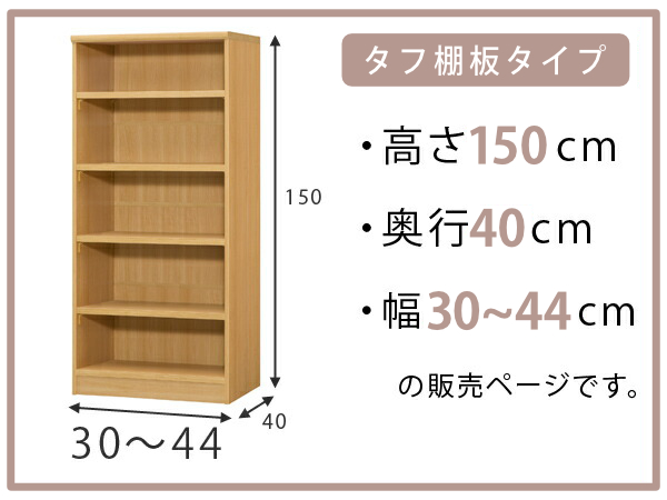 オーダー本棚 タフ棚板タイプ 幅30-44cm 奥行40cm 高さ150cm ( 収納棚 書棚 本棚 オーダー ラック 壁面収納 書庫 日本製 オーダーメイド 文庫本 コミック フリーラック )
