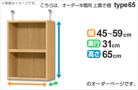 専用 上置き棚 標準棚板 type65 オーダー本棚 奥行31cm 幅45-59cm用 ( オーダーメイド 天井つっぱり 書棚 収納棚 セミオーダー )