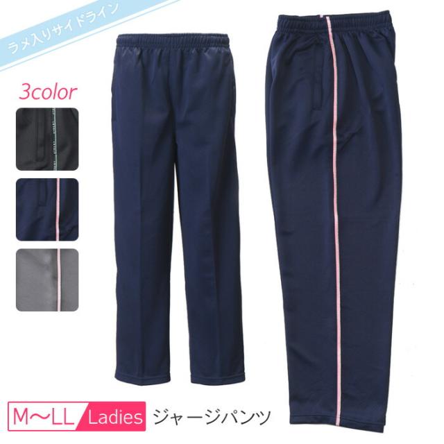 ジャージ パンツ レディース フィットネス シニア ヘルパー 介護 ユニフォーム ラメ入りサイドライン (D-cdp-11531_DS)【送料無料】 agesugi_ssp