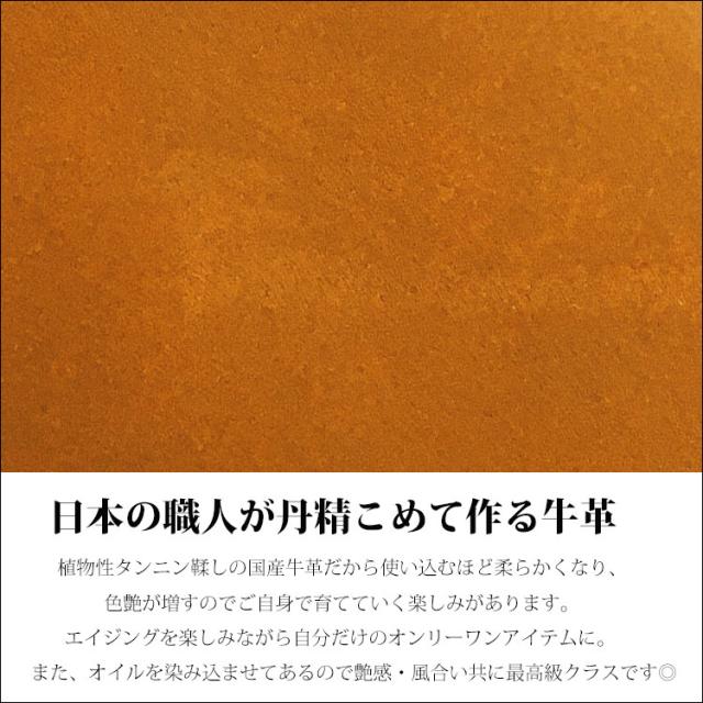 ・職人による手作りなので最高級!植物性タンニンの鞣しの国産ヌメ革/牛革。