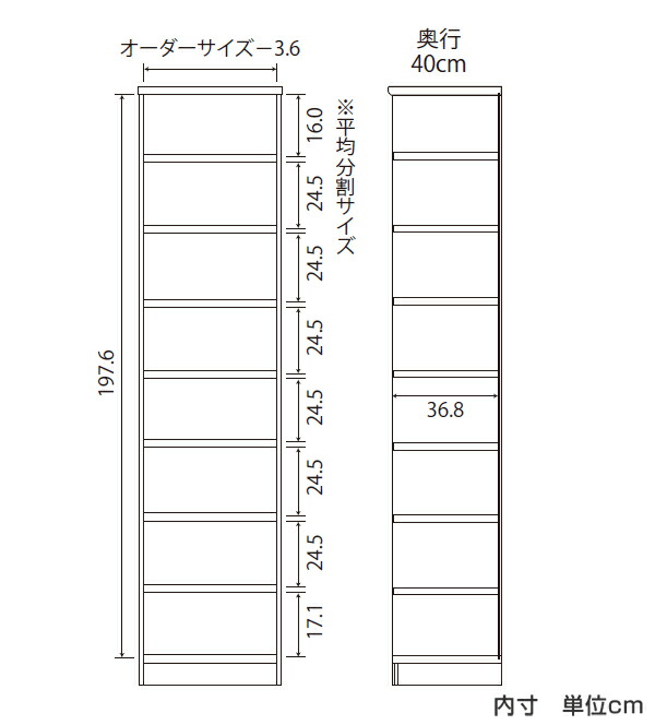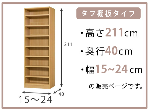 オーダー本棚 タフ棚板タイプ 幅15-24cm 奥行40cm 高さ211cm ( 収納棚 書棚 本棚 オーダー ラック 壁面収納 書庫 日本製 オーダーメイド 文庫本 コミック フリーラック )