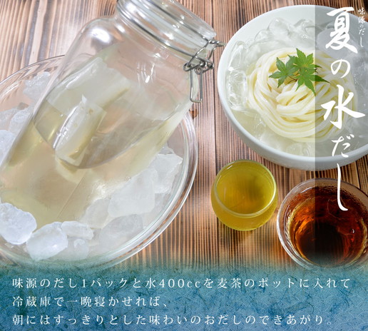 - とても良い味のだしですね。うどんにも炊き込み御飯にも煮物にも何でも使えて便利です。これからの季節はおでんのだしとか鍋のだしでも良いですね。又購入させてもらいます。