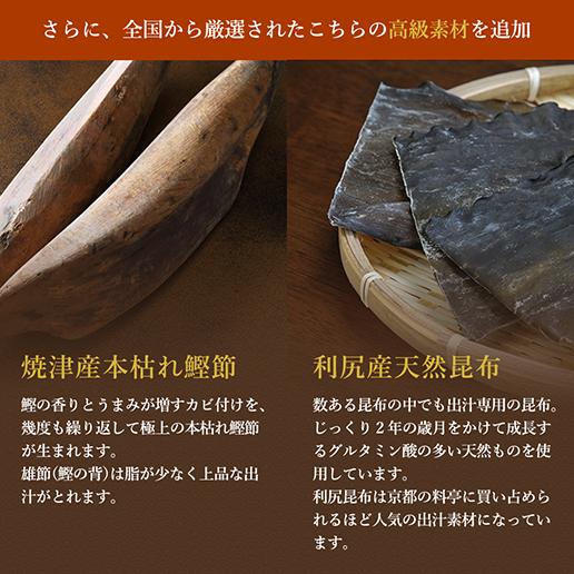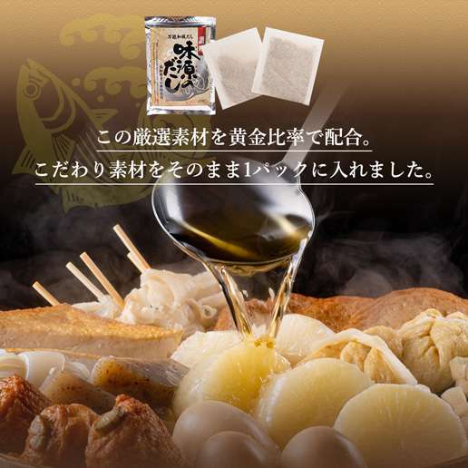当鰹振り出しは厳選素材「宗田鰹」や「伊吹いりこ」「香信椎茸」「利尻昆布」「焼津鯖節」等贅沢素材で旨味成分を凝縮した万能和風だしです。