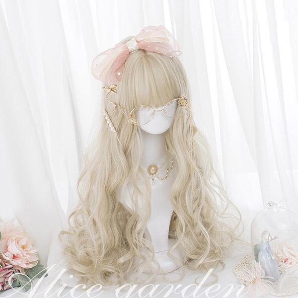 ウィッグ ロリータ 原宿風 ロングウィッグ 巻き毛 ぱっつん前髪 前髪あり パーマ 金髪 ゴールド ゆめかわいい ゆめかわ コスプレ コスプレウィッグ 可愛い 長髪 ロング 耐熱ウィッグ コスチューム 仮装 大人 自然 ナチュラル イベント