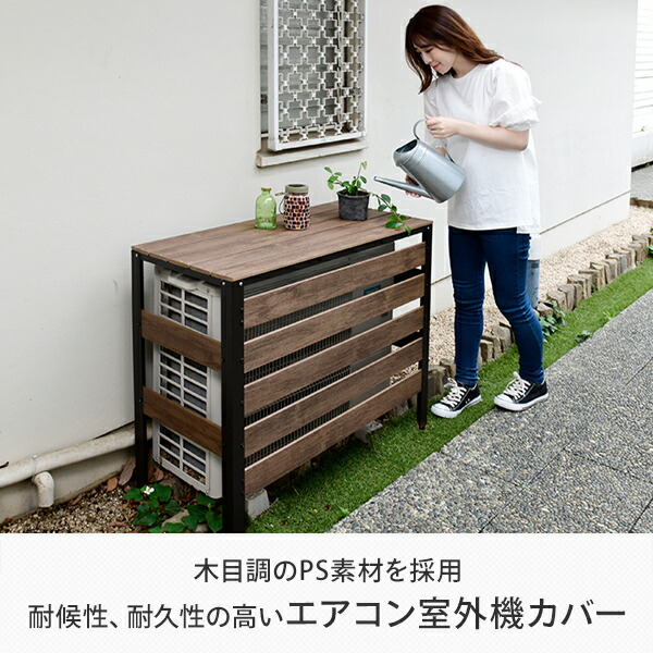エアコン室外機カバー 木目調 人工木 耐久性/耐候性が高い サビに強い おしゃれ 室外機カバー ダークブラウン エアコンカバー 日よけカバー 室外機ラック エアコンラック アルミ 山善 YAMAZEN ガーデンマスター 【送料無料】