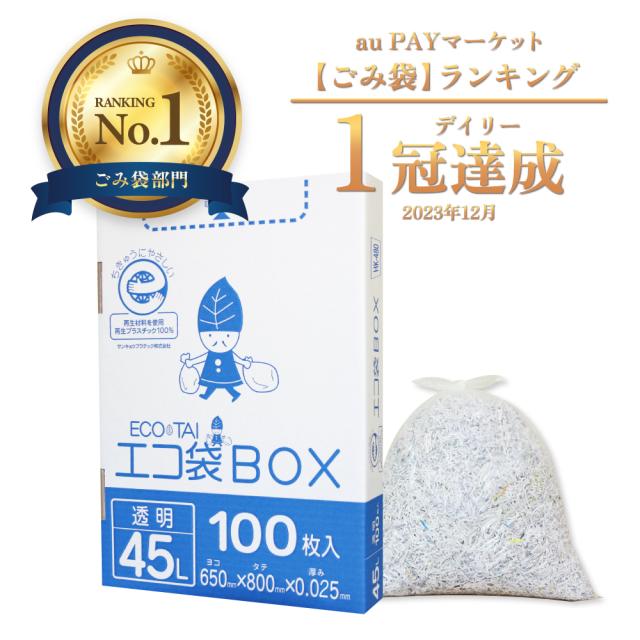 ポリ袋 ゴミ袋 箱タイプ 45リットル 透明 65x80cm 0.025mm厚 100枚 HK-480kobako ごみ袋 45l BOXタイプ 箱型 収納 クリア サンキョウプラテック 送料無料