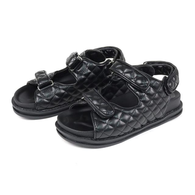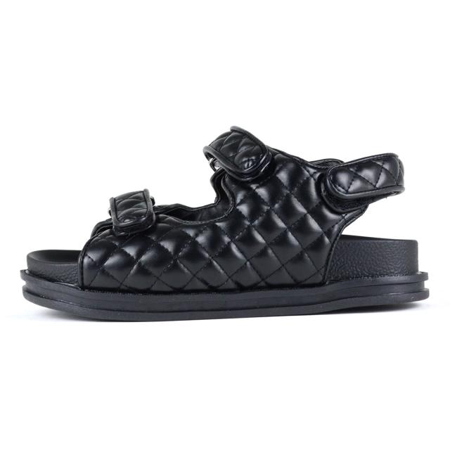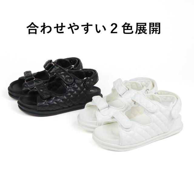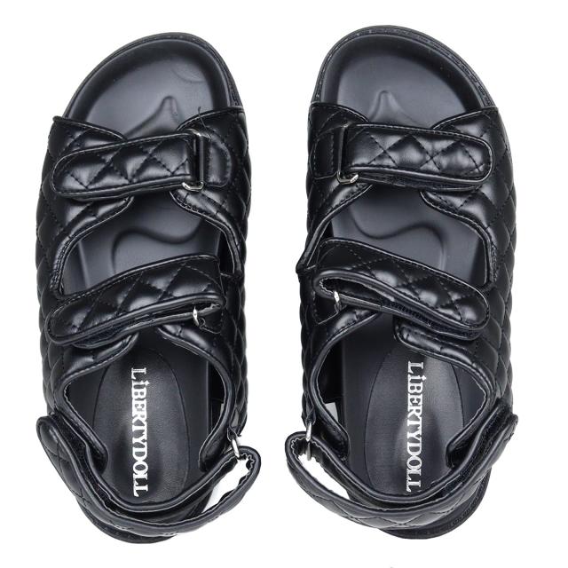 レディース サンダル ベルクロ スポーツサンダル キルティング スポーティ ストラップ ベルト No.4104 23.0cm〜24.5cm 黒 ブラック LiBERTYDOLL
