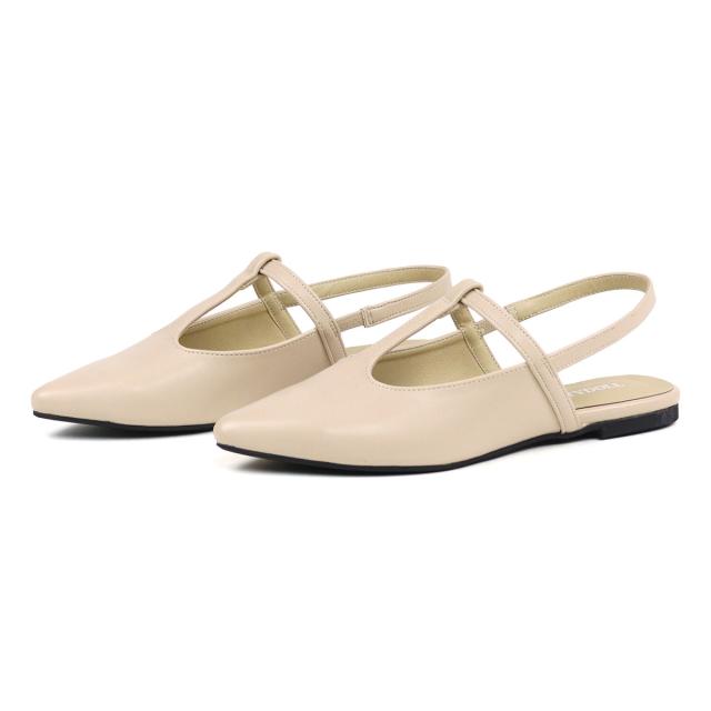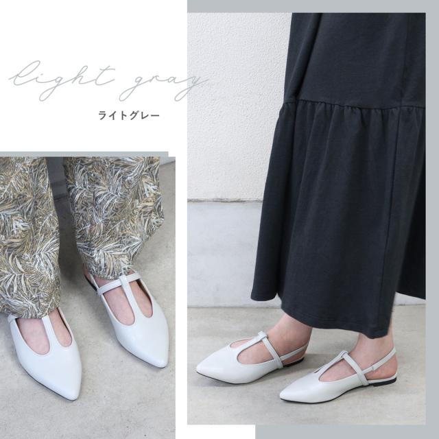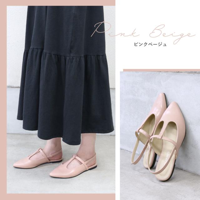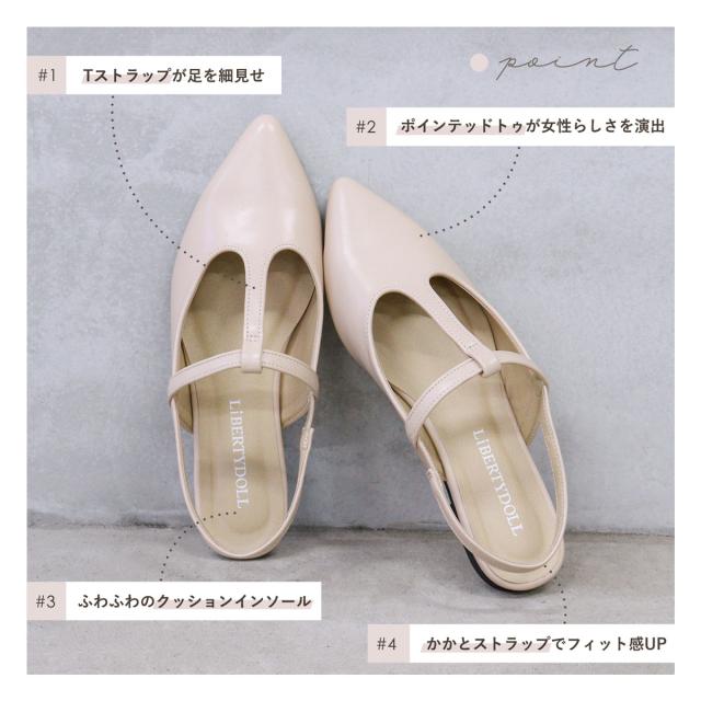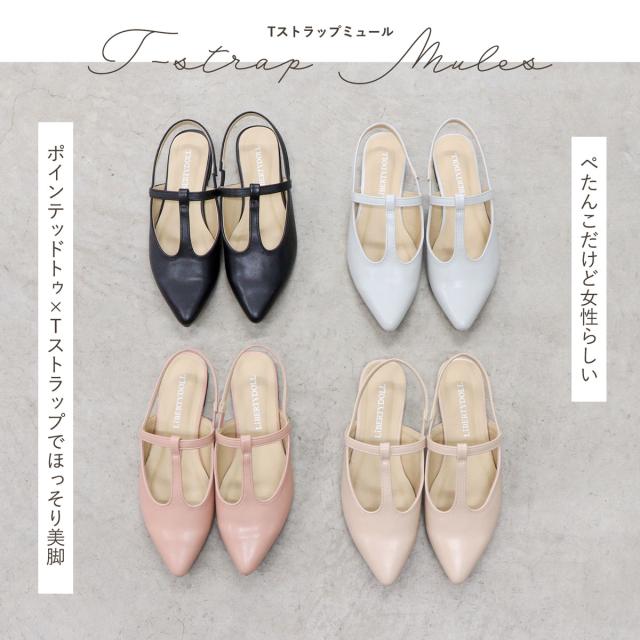 ミュール パンプス レディース サンダル ポインテッドトゥ フラット ぺたんこ 履きやすい つっかけ Tストラップ 0.8cmヒール 23.0cm〜24.5cm 黒 ブラック LiBERTYDOLL No.1159