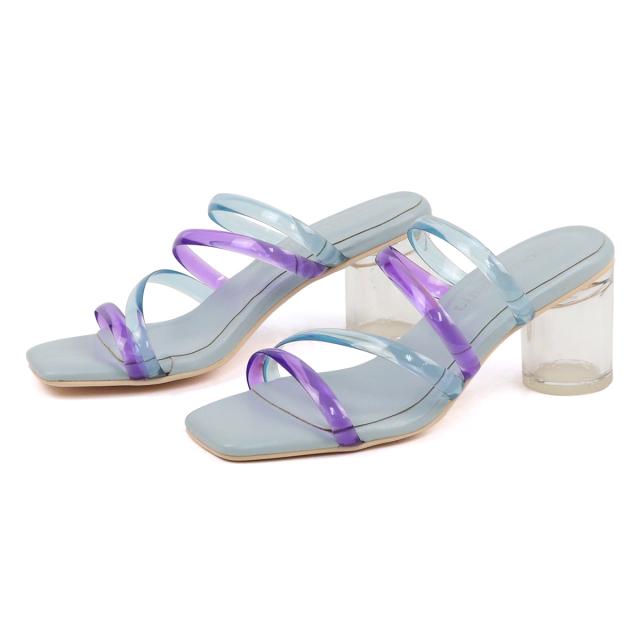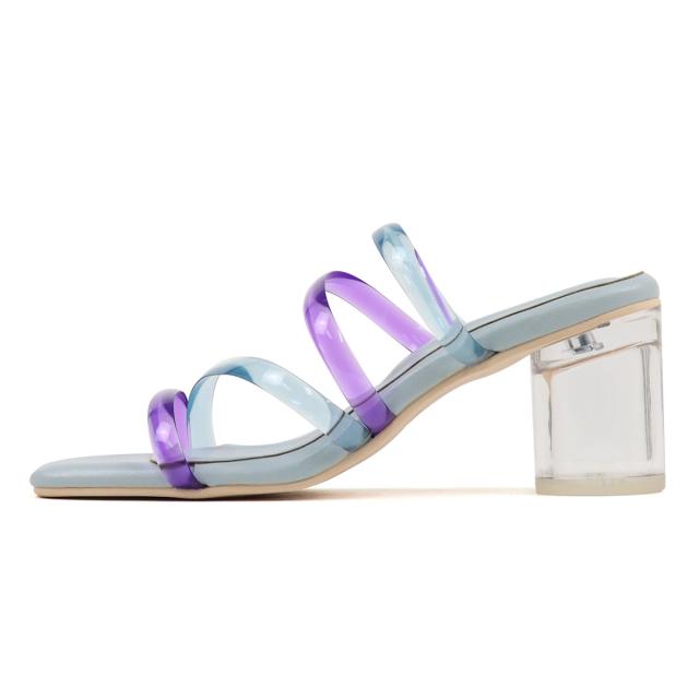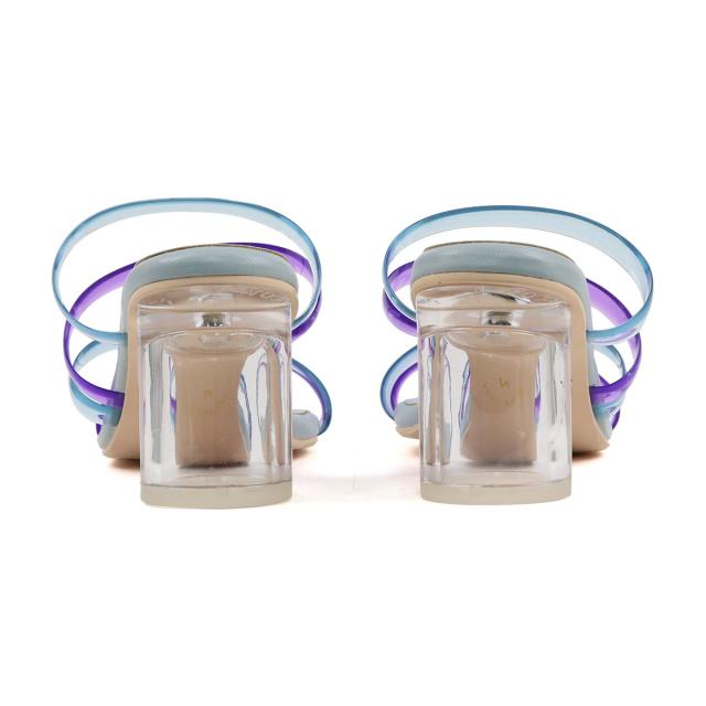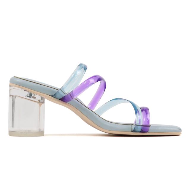 涼し気でシアーなクリア素材と円柱クリアヒールがポイントの、マストハブな大注目アイテム。