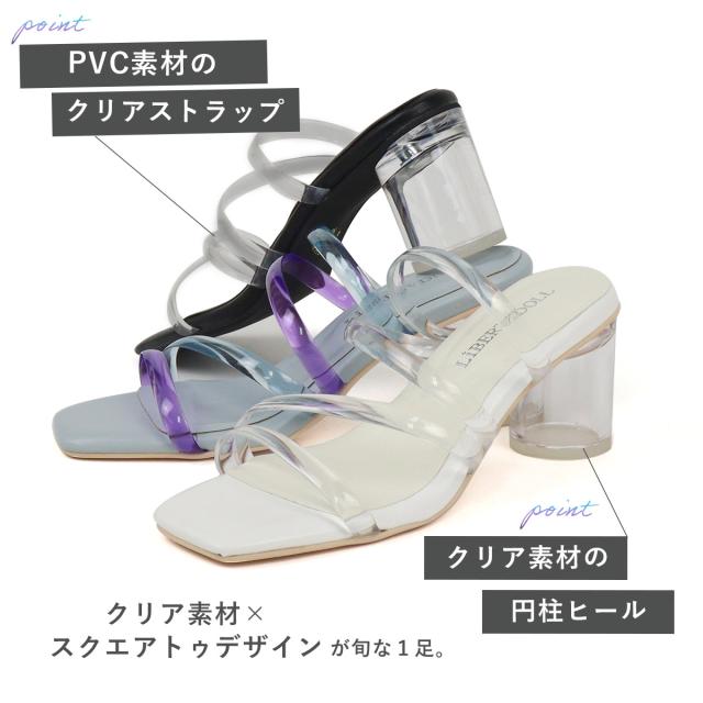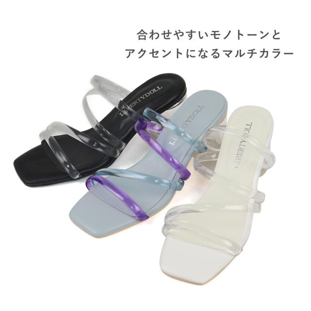 サンダル ミュール レディース 靴 クリアコード 細ストラップ チューブ スクエアトゥ 透明 円柱ヒール 美脚 つっかけ 23.0〜24.5cm 黒 ブラック LiBERTYDOLL No.4119