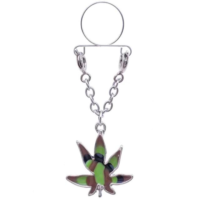 マリファナの葉に迷彩柄のエナメルコーティングをしたユニークで面白いニップルクリップ型ボディピアス。