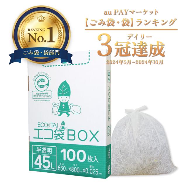 ポリ袋 ゴミ袋 45リットル 箱タイプ 半透明 65x80cm 0.025mm厚 100枚 HK-490kobako ごみ袋 45l BOXタイプ 箱型 収納 ホワイト サンキョウプラテック 送料無料