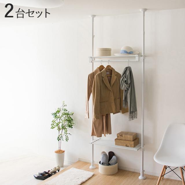 FCL-HR 突っ張りハンガーラック【2台セット】グレー色 / 全3色 棚板高さ自由 日本製 幅90×奥行28×高さ220〜270cm 組立て商品 コートハンガー 衣類ハンガー コート掛け 洋服掛け 衣類収納