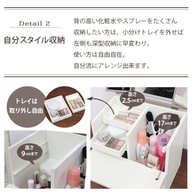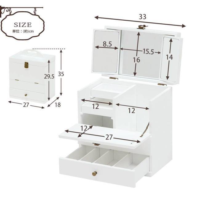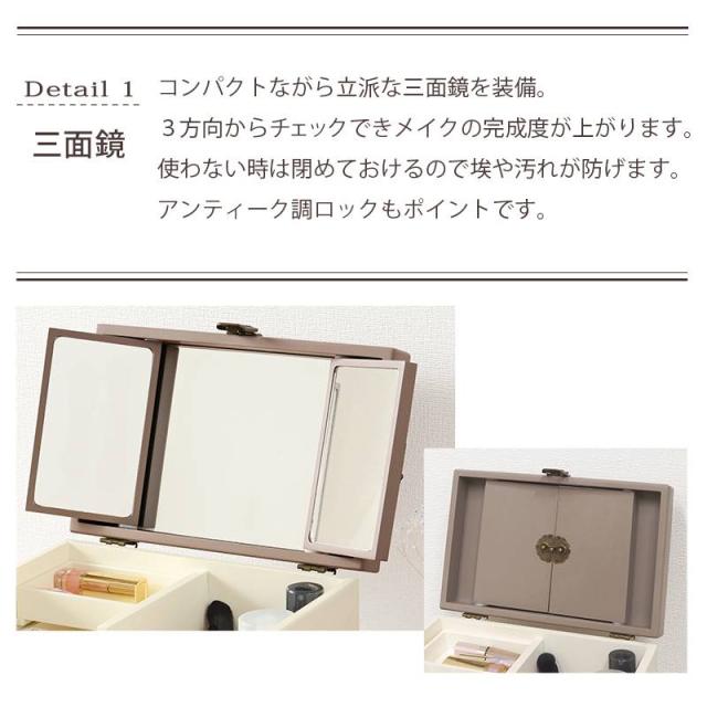 コスメボックス メイクボックス ドレッサー 鏡台 三面鏡 化粧品収納 持ち運び ホワイト チャコールグレー ツートンカラー