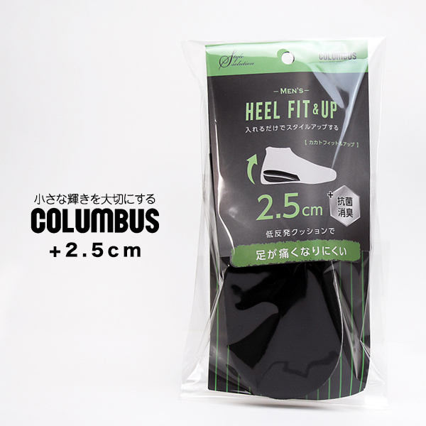 ハーフインソール シークレット メンズ コロンブス COLUMBUS スタイルソリューション カカトフィット アップ 2.5cm 美脚 背が高くなる シークレットインソール 中敷き 靴 シューズ 低反発クッション インヒール 男性用 フリーサイズ