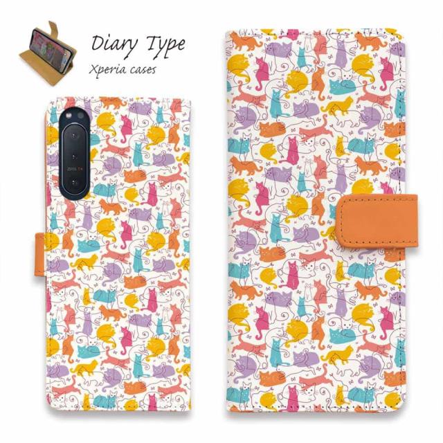 Xperia 10 VII Xperia 1 VII Xperia 10 VI Xperia 1 VI Xperia 10 V Xperia 1 V Xperia 5 IV Xperia Ace III スマホケース 手帳型 マグネット カード収納 エクスペリア5 エクスペリア10 ケース 猫 ネコ 用品 雑貨 毛糸と猫のシームレスパターン3