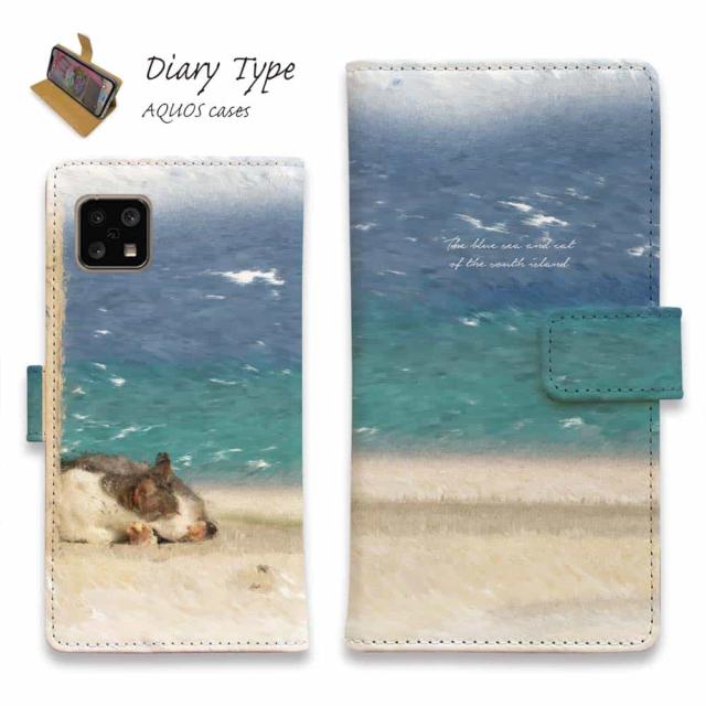 AQUOS sense10 アクオス センス10 スマホケース 手帳型 マグネット カード収納 AQUOS sense9 sense8 R9 R8 Pro wish4 wish3 sense7 plus ケース sense6 sense4 アクオス ケース 猫 ネコ 用品 雑貨 南の島の青い海と猫