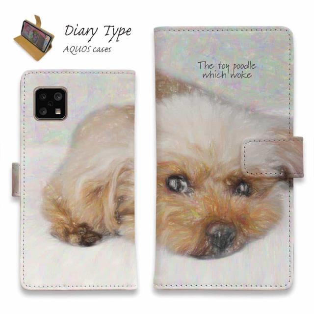 AQUOS sense10 アクオス センス10 スマホケース 手帳型 マグネット カード収納 AQUOS sense9 sense8 R9 R8 Pro wish4 wish3 sense7 plus ケース sense6 sense4 アクオス ケース 犬 イヌ 用品 雑貨 起きた瞬間のトイプードル